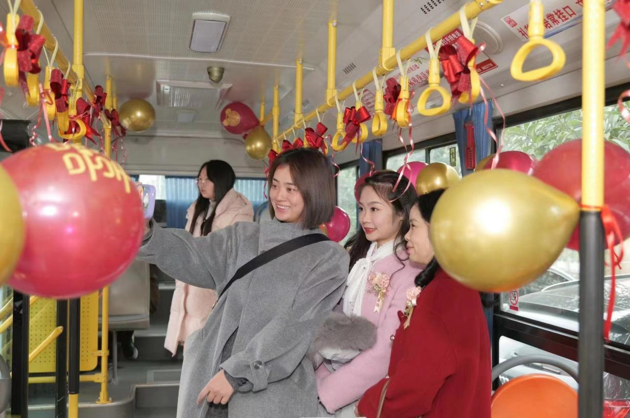使用這輛“公交婚車”的新人表示:“與傳統(tǒng)迎親的車隊(duì)相比,公交婚車不僅低碳環(huán)保,好看熱鬧,而且租金也相對(duì)較低,性價(jià)比直接拉滿,親朋好友都聚集在寬敞的公交車?yán)铮宦放恼、唱歌,特別有儀式感”。