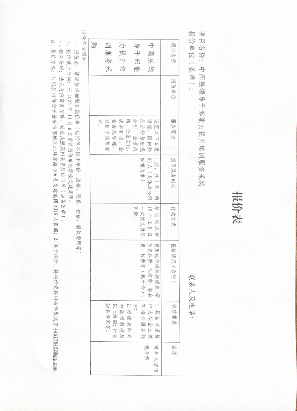 中高層領(lǐng)導干部能力提升培訓服務(wù)采購詢價邀請